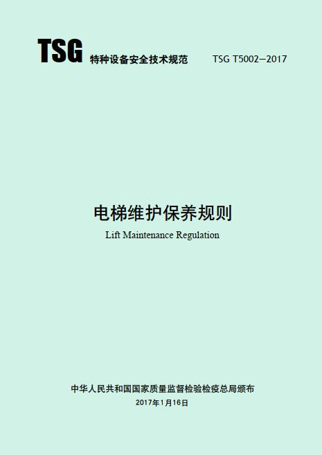 《電梯維護保養(yǎng)規(guī)則 TSG T5002—2017》國家質量監(jiān)督檢驗檢疫總局