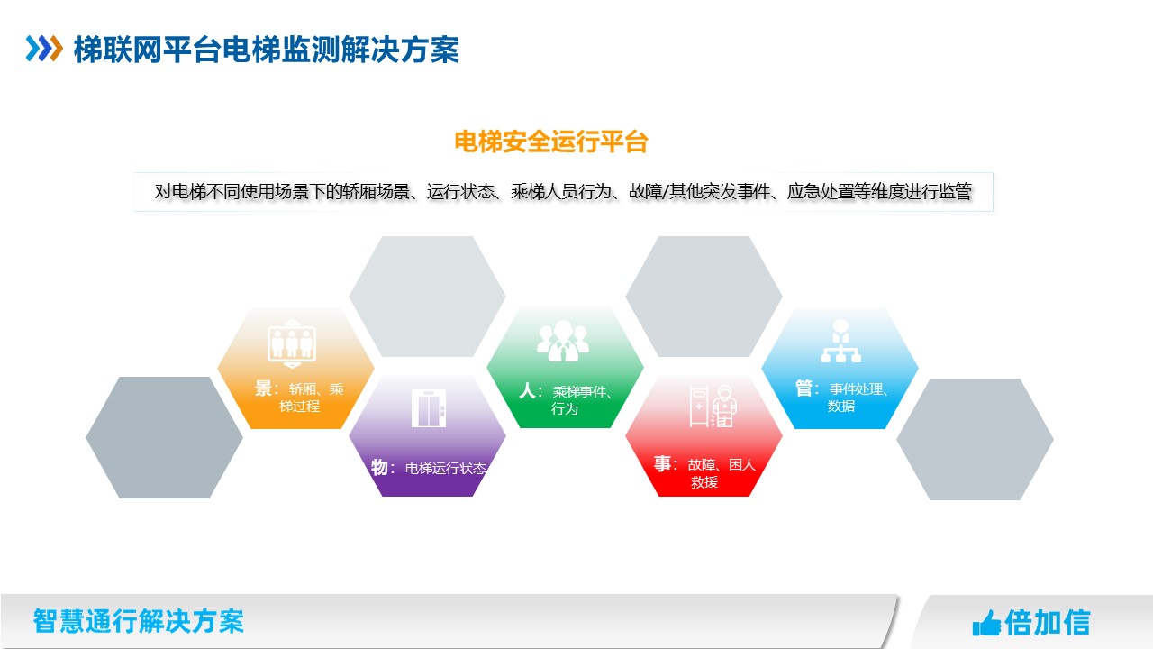 對電梯不同使用場景下的轎廂場景、運行狀態、乘梯人員行為、故障/其他突發事件、應急處置等維度進行監管。