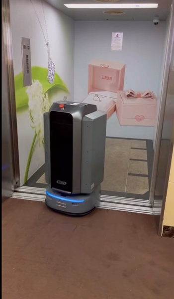 在廣東一家家電制造工廠,AGV移動(dòng)機(jī)器人正在進(jìn)行貨物搬運(yùn)工作,機(jī)器人搭配機(jī)械手臂,對(duì)工件進(jìn)行抓取、裝配、搬運(yùn)、裝卸,但是整個(gè)運(yùn)輸環(huán)節(jié)仍然少不了人工的參與,主要是因?yàn)檫@家工廠的AGV移動(dòng)機(jī)器人只能在本層區(qū)域內(nèi)工作,還不能實(shí)現(xiàn)跨樓層運(yùn)輸,當(dāng)需要把三樓組裝線下線的成品搬運(yùn)到一樓的成品庫時(shí),AGV移動(dòng)機(jī)器人無法實(shí)現(xiàn)自主乘梯下樓,因此還是需要工人再次轉(zhuǎn)運(yùn)才能完成。