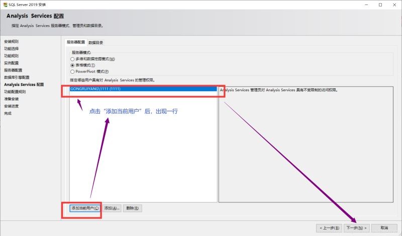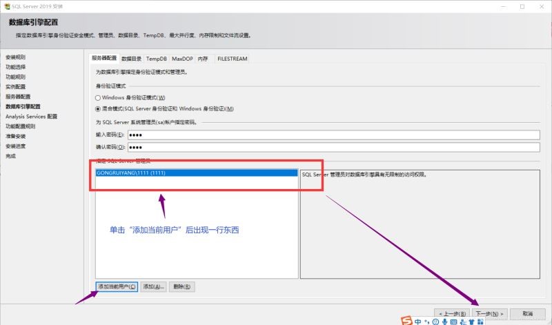 填好密碼后,點擊添加當前用戶,出現(xiàn)下面界面,再單擊下一步