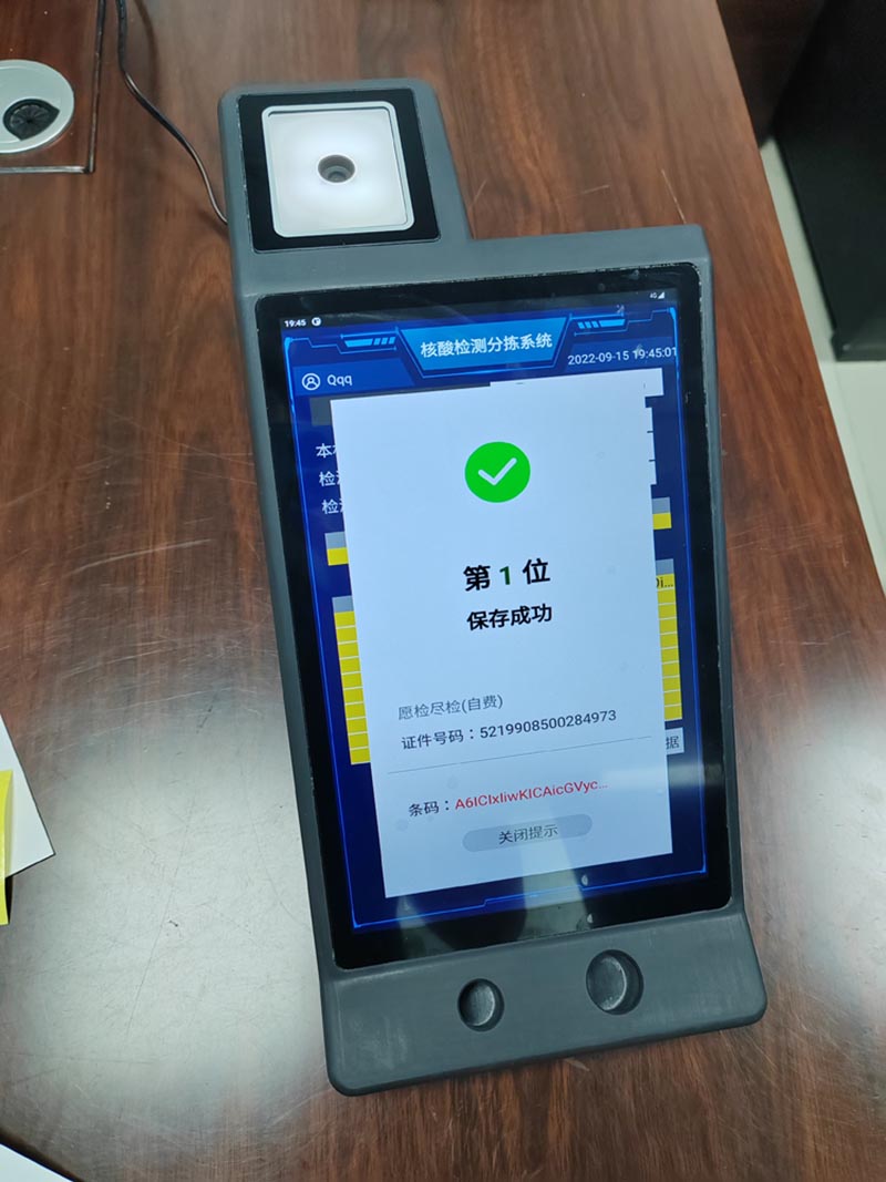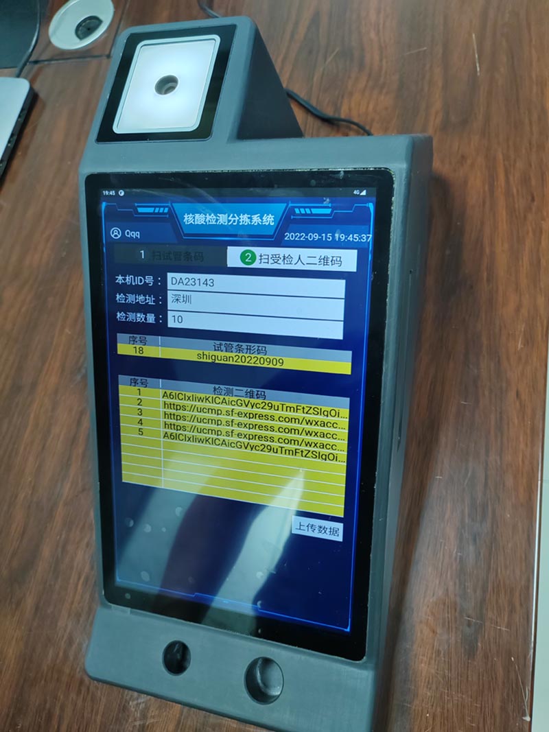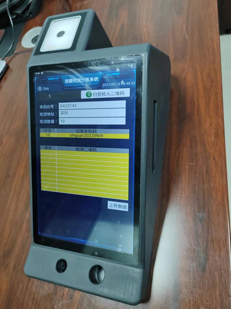 5、依次進(jìn)行,滿了5人或者10人或者20人后,系統(tǒng)提示掃試管碼,同時(shí)上報(bào)數(shù)據(jù)給衛(wèi)健委平臺(tái);